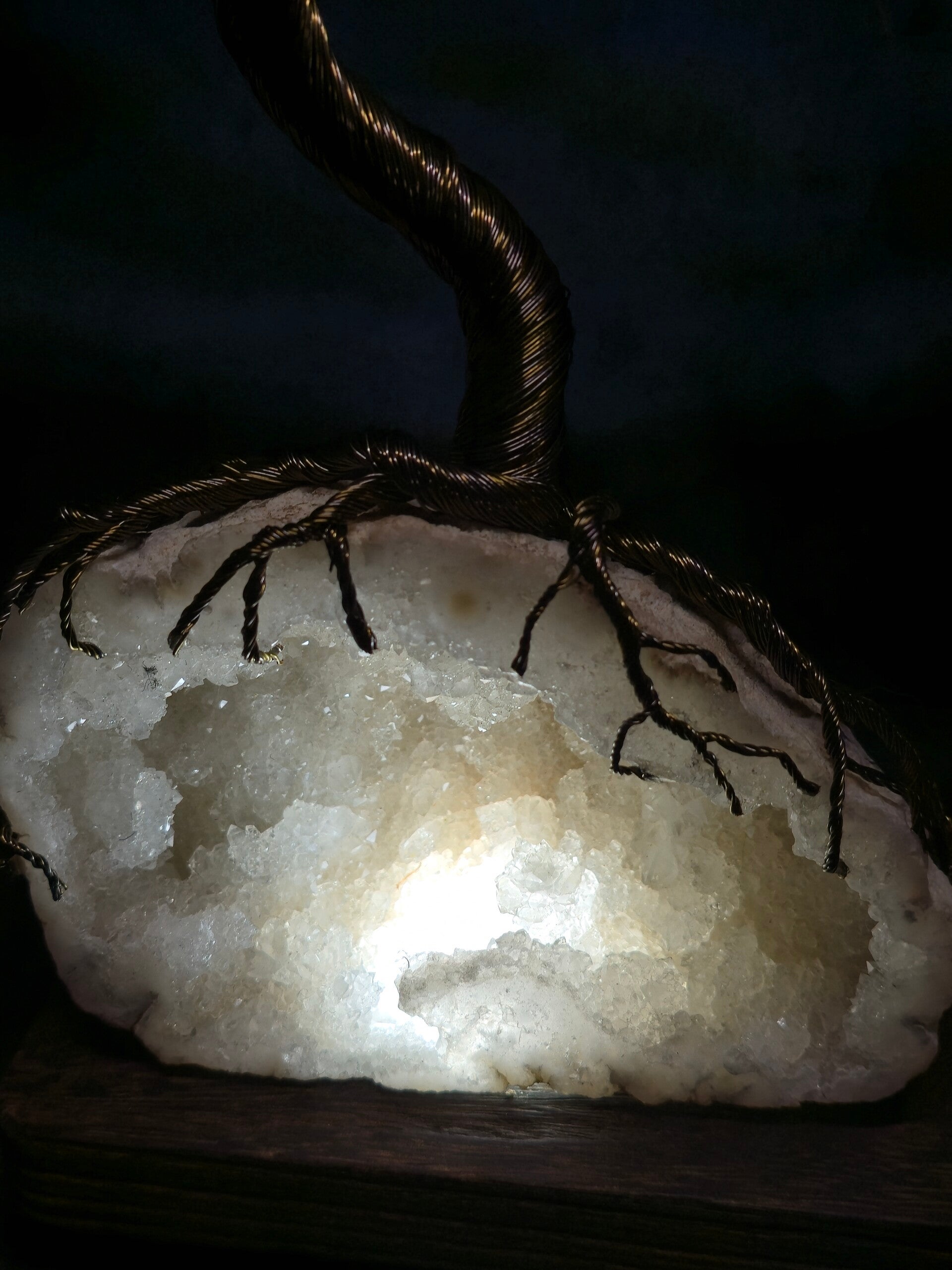 Bergkristal staat bekend als de meesterheler onder de edelstenen en wordt geassocieerd met helderheid, balans en energieversterking. De combinatie met agaat maakt deze boom niet alleen visueel indrukwekkend, maar ook bijzonder geschikt voor een meditatieplek, werkruimte of als spiritueel statement in huis.