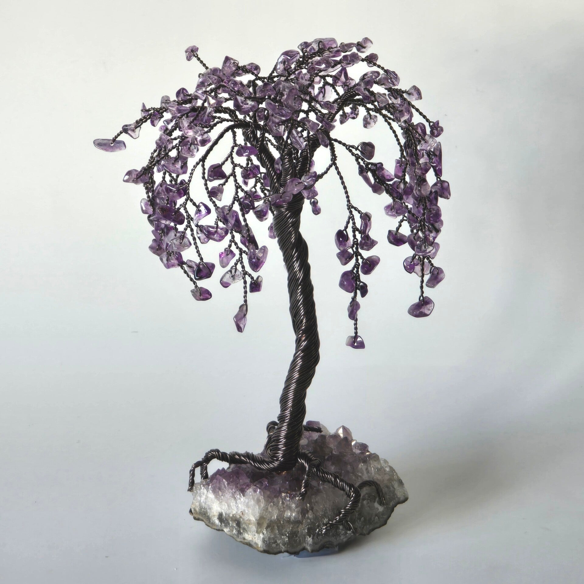 Deze handgemaakte amethist edelsteenboom brengt een gevoel van rust, harmonie en bescherming. Amethist staat bekend om zijn kalmerende werking, het verzachten van stress en het versterken van spirituele groei.