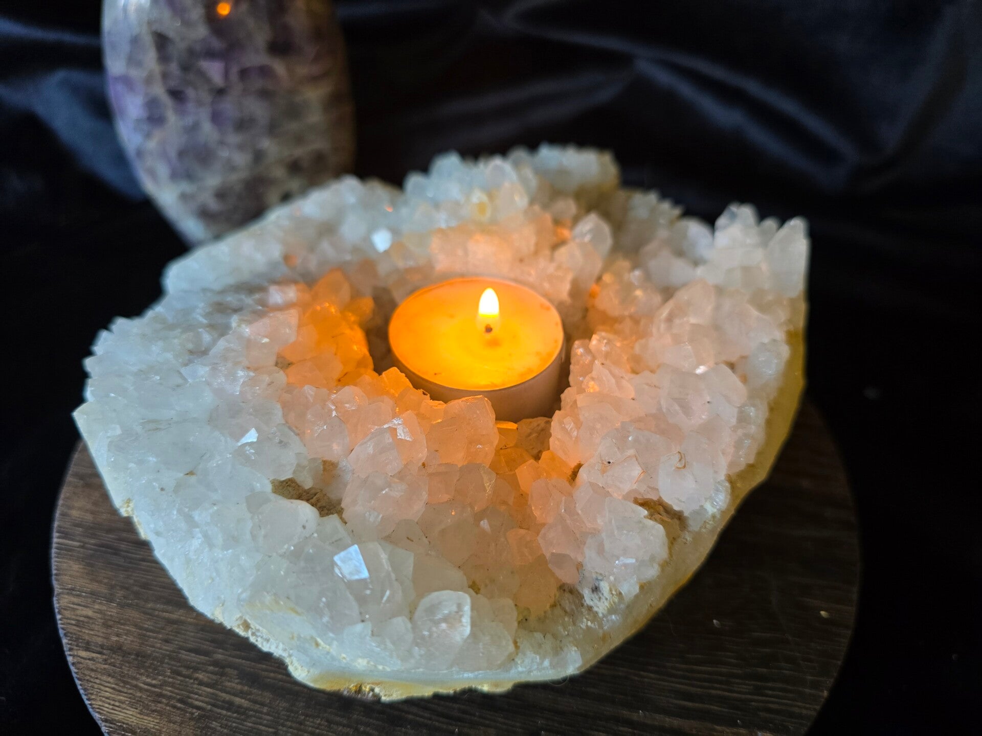 Apofyliet wordt vaak geassocieerd met innerlijke rust, helderheid en spirituele verbinding. Hierdoor is deze theelichthouder zeer geliefd in meditatie- en praktijkruimtes.